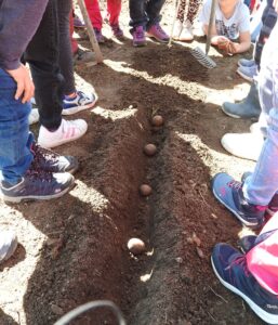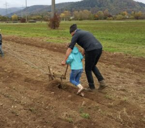Die wundervolle Landschaft des Dinkelbergs bietet auch mit seiner landwirtschaftlichen Nutzung viel Potential um naturnahes und nachhaltiges Lernen zu ermöglichen. In mehreren Projekten für jede Klassenstufe kooperieren wir mit verschiedenen Bauernhöfen. Die Schüler:innen begleiten das Korn bis es zum Brot wird, pflanzen Kartoffeln und verarbeiten sie, pressen Äpfel zu Saft und dokumentieren den Wuchs von Obstbäumen.