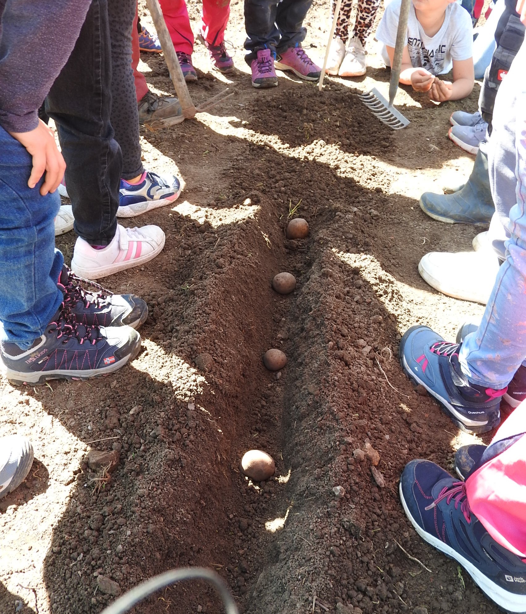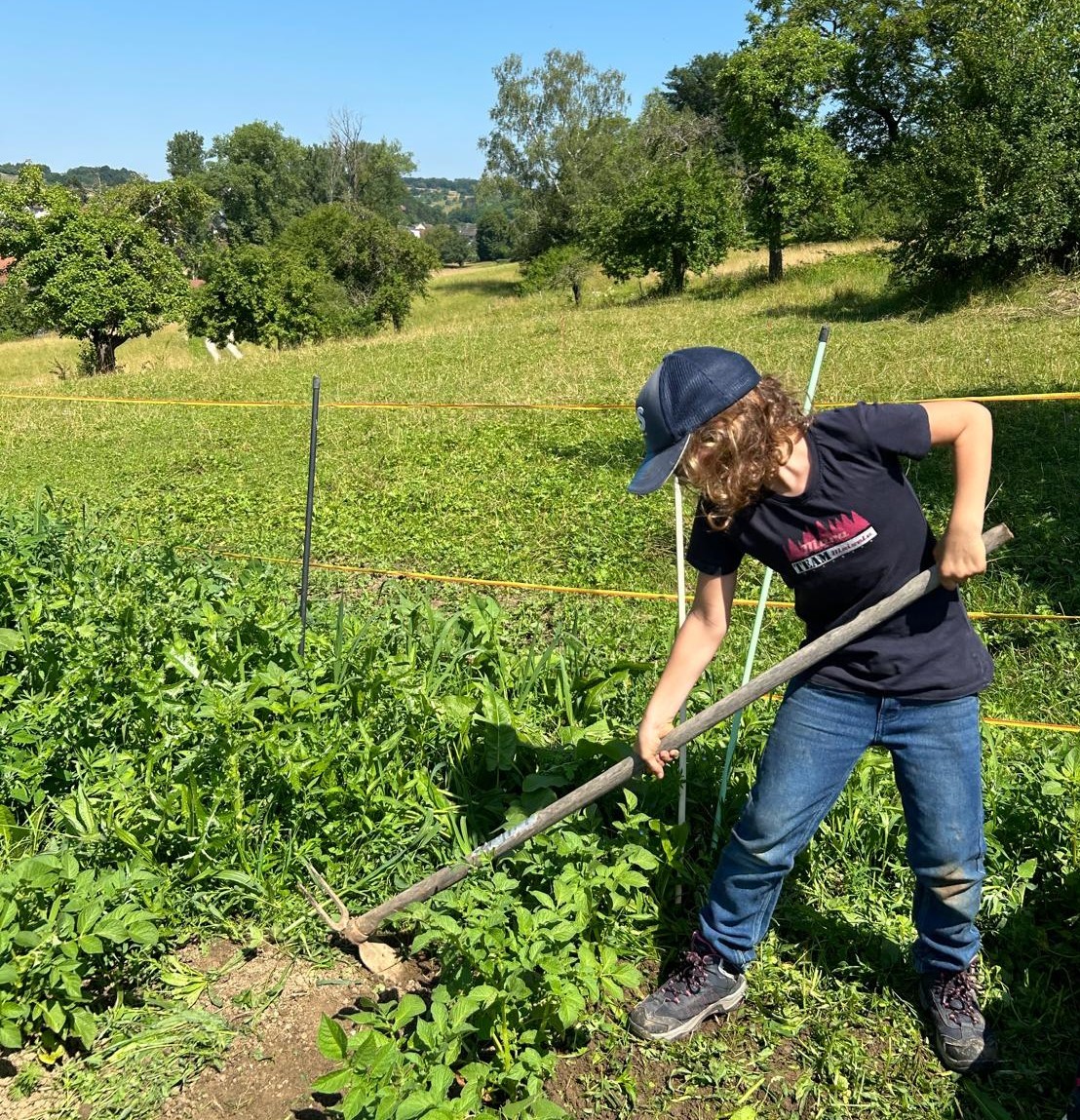 Die wundervolle Landschaft des Dinkelbergs bietet auch mit seiner landwirtschaftlichen Nutzung viel Potential um naturnahes und nachhaltiges Lernen zu ermöglichen. In mehreren Projekten für jede Klassenstufe kooperieren wir mit verschiedenen Bauernhöfen. Die Schüler:innen begleiten das Korn bis es zum Brot wird, pflanzen Kartoffeln und verarbeiten sie, pressen Äpfel zu Saft und dokumentieren den Wuchs von Obstbäumen.