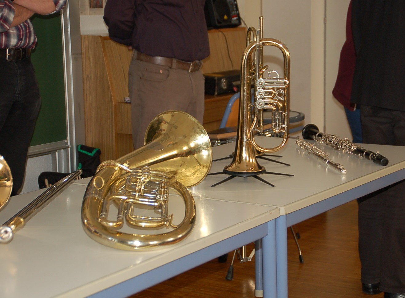 In jedem Schuljahr stellt der Musikverein Minseln Instrumente vor, spielt für die Schüler:innen einige Stücke und lässt sie anschließend die Instrumente ausprobieren.
