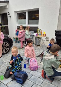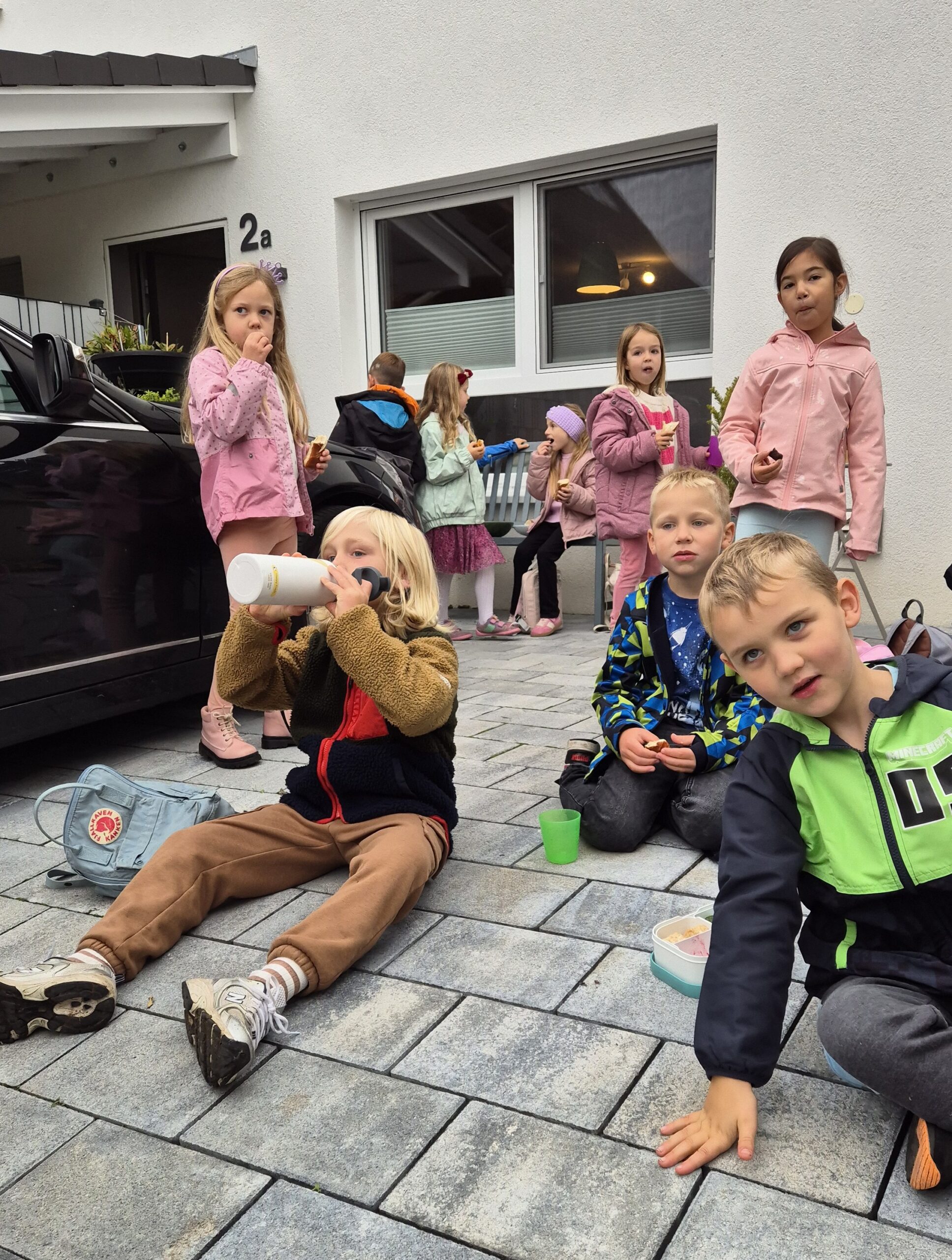 Die Kinder bekamen etwas zu trinken und zu essen.