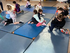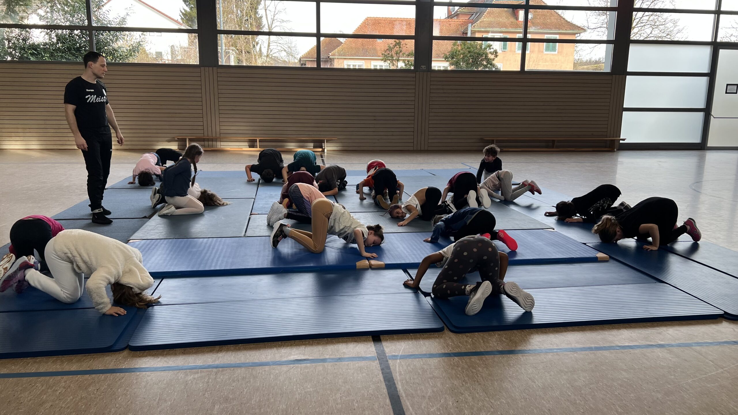 So purzelten die Schülerinnen und Schüler vorwärts und rückwärts über die Matte und übten ihre Beweglichkeit und Koordination.